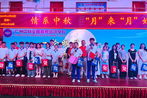 金秋送爽,丹桂飘香。2025年10月6日,广州中科全程高考培训学校中秋晚会在校园内温馨上演。这场晚会不仅为同学们带来了欢乐与温暖,更传递着学校对每一位学子浓浓的关怀。